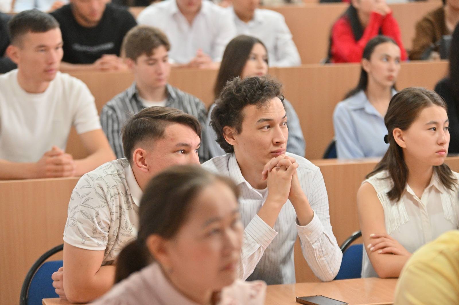 Кездесу соңында студенттер көкейлеріндегі сұрақтарын қойып, ректордан нақты әрі мазмұнды жауаптар алды.