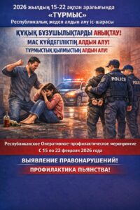 Шымкент қаласы аумағында «Тұрмыс» жедел-профилактикалық іс-шарасы өткізілуде. Аталған іс-шараның мақсаты – тұрмыстық зорлық-зомбылықтың алдын алу, отбасылық жанжалдардың жолын кесу, құқық бұзушылықтарға бейім тұлғаларды анықтап, олармен профилактикалық жұмыстар жүргізу.