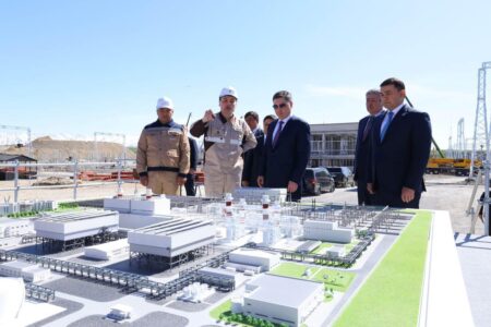 Премьер-министр Олжас Бектенов Түркістан облысында қуаты 1000 МВт болатын бу-газ қондырғысы (БГҚ) базасында салынып жатқан электр стансасының құрылысын тексерді.